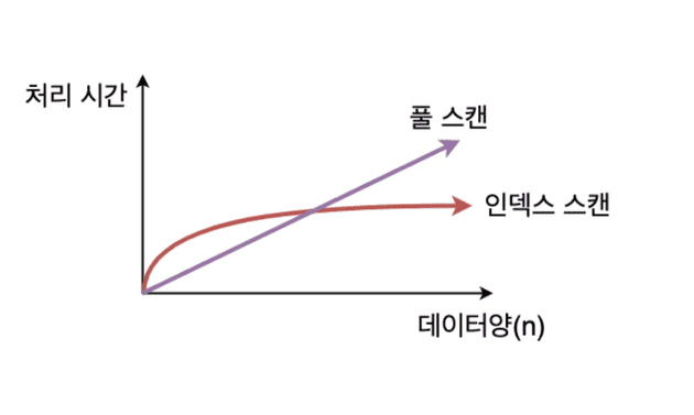 - 전체 데이터의 20%가 넘어가는 경우 오히려 full scan이 빠를 수 있음