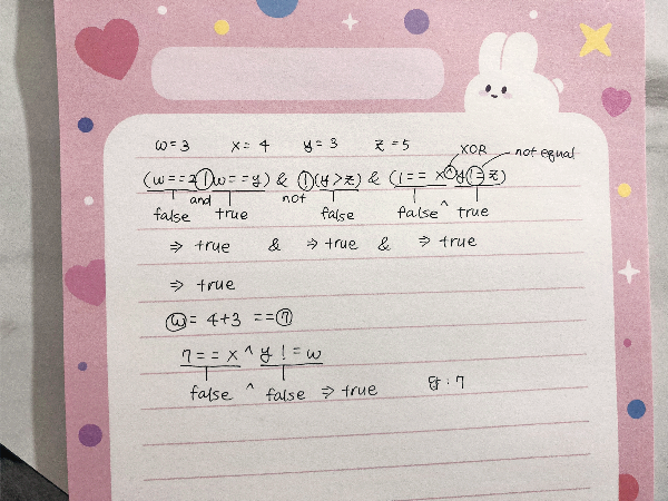 if (7 == x ^ y != w) {