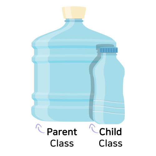 이때 아래 사진처럼 Parent Class는 큰 물통에, Child Class는 작은 물통에 비유를 할 수 있다.