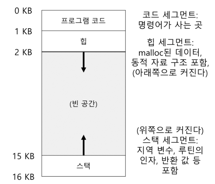 - 영역: 하나의 프로세스는 코드 영역, 데이터 영역, 스택 영역, 힙 영역을 가짐. 이중 스택 영역과 힙 영역은 확장되거나 축소될 수 있음